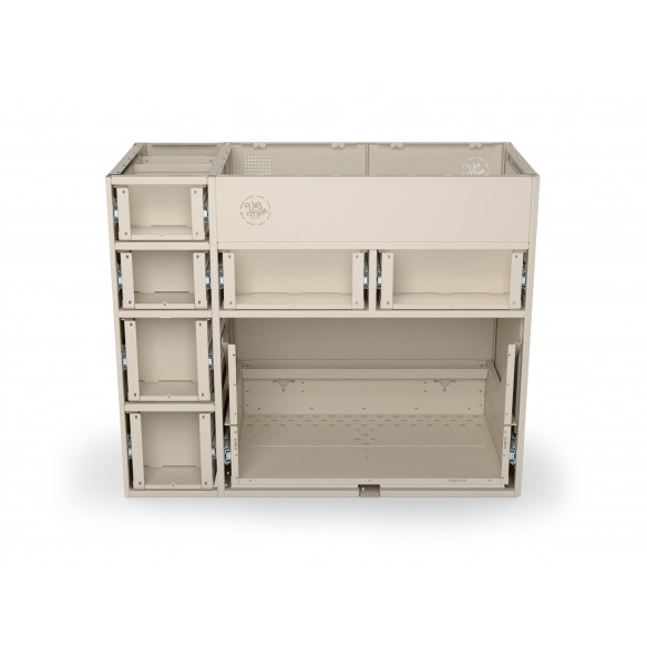 Moon Kitchen Solid has been designed so that the entire furniture can be easily mounted in the vehicle. If you mount the water-sewage and electrical installation on quick connectors, and screw the kitchen to the floor on recessed airline rails, then at any moment you can disassemble and assemble the kitchen. Its solid construction will withstand dozens of such operations, thanks to which you can use your van in various ways, e.g. to transport larger items.