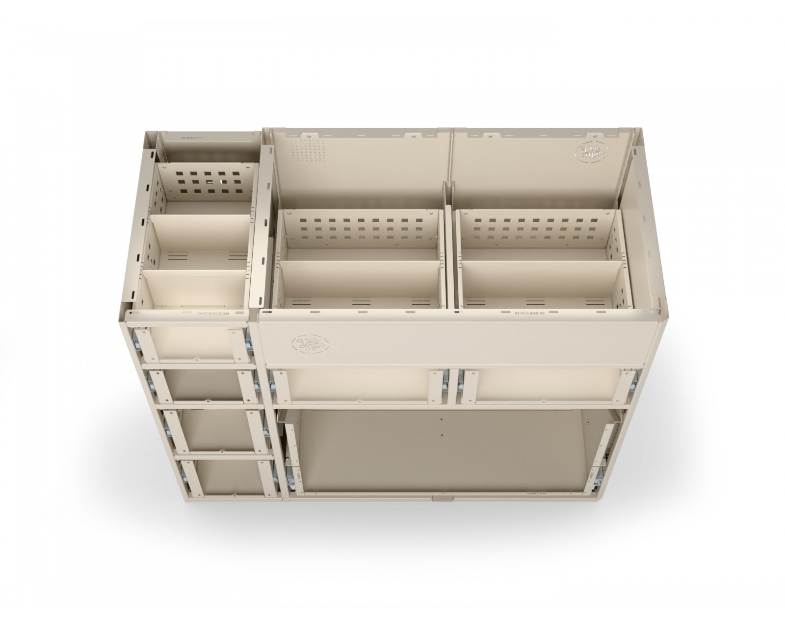 Intelligent drawers with dividers - aluminum dividers divide each drawer into adjustable spaces for perfect organization.