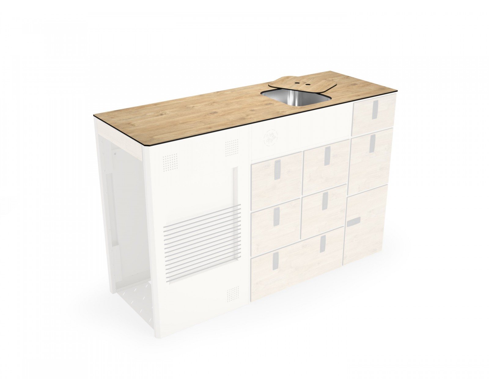 Diese Arbeitsplatte passt NUR zur Moon Kitchen Solid Model 1. Sie funktioniert nicht mit anderen Küchenmodellen. Erhältlich in drei Versionen: Spüle links, Spüle recht oder ohne Spülenausschnitt für individuelle Installationen.