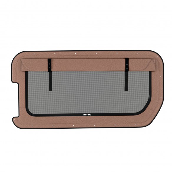 Voller Fensterzugang - Sie haben die Thermoabdeckung ausgeklippt und verstaut. Das Moskitonetz ist hochgerollt. Sie haben freie Sicht, volles Licht und direkten Zugang zum Fenster. Perfekt für die Fahrt, wenn Sie keinen Schutz benötigen.