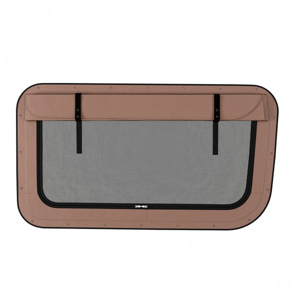 Voller Fensterzugang - Sie haben die Thermoabdeckung ausgeklippt und verstaut. Das Moskitonetz ist hochgerollt. Sie haben freie Sicht, volles Licht und direkten Zugang zum Fenster. Perfekt für die Fahrt, wenn Sie keinen Schutz benötigen.
