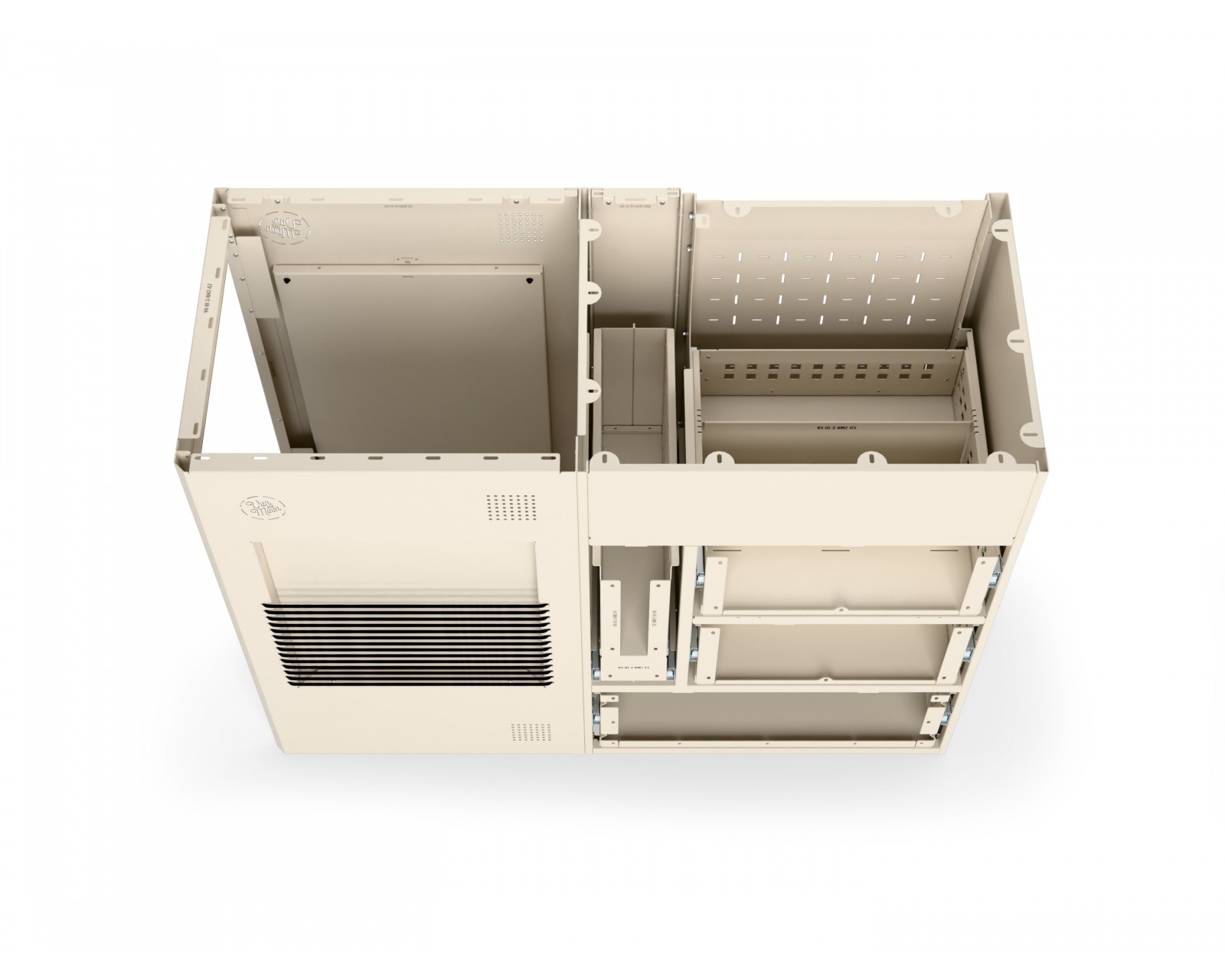 Każda Moon Kitchen Solid ma przygotowane przestrzenie na montaż przewodów wodnych, kanalizacyjnych i elektrycznych. Dodatkowo są odginane półeczki do montażu instalacji, które można zastosować, ale nie trzeba. Duże kanały kablowe na samym dole i w środku kuchni sprawiają, że montaż instalacji w meblu jest łatwy, prosty i przyjemny. Wszystkie ściany wewnątrz kuchni są perforowane, co z jednej strony ułatwia montaż instalacji, z drugiej poprawia obieg powietrza potrzebny do wentylacji lodówki, kuchenki itp.
