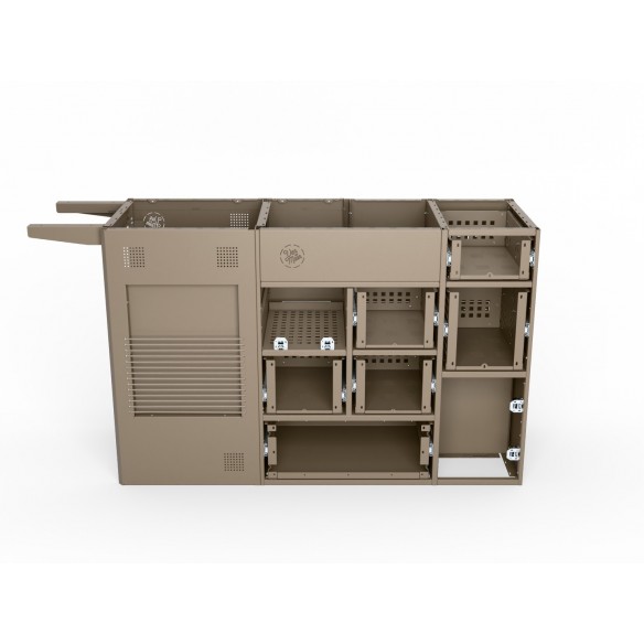 Skręcana konstrukcja aluminiowa, regulowane tylne ściany oraz 5 niezależnych modułów, pozwolą Ci zbudować ekskluzywną kuchnię do vana.