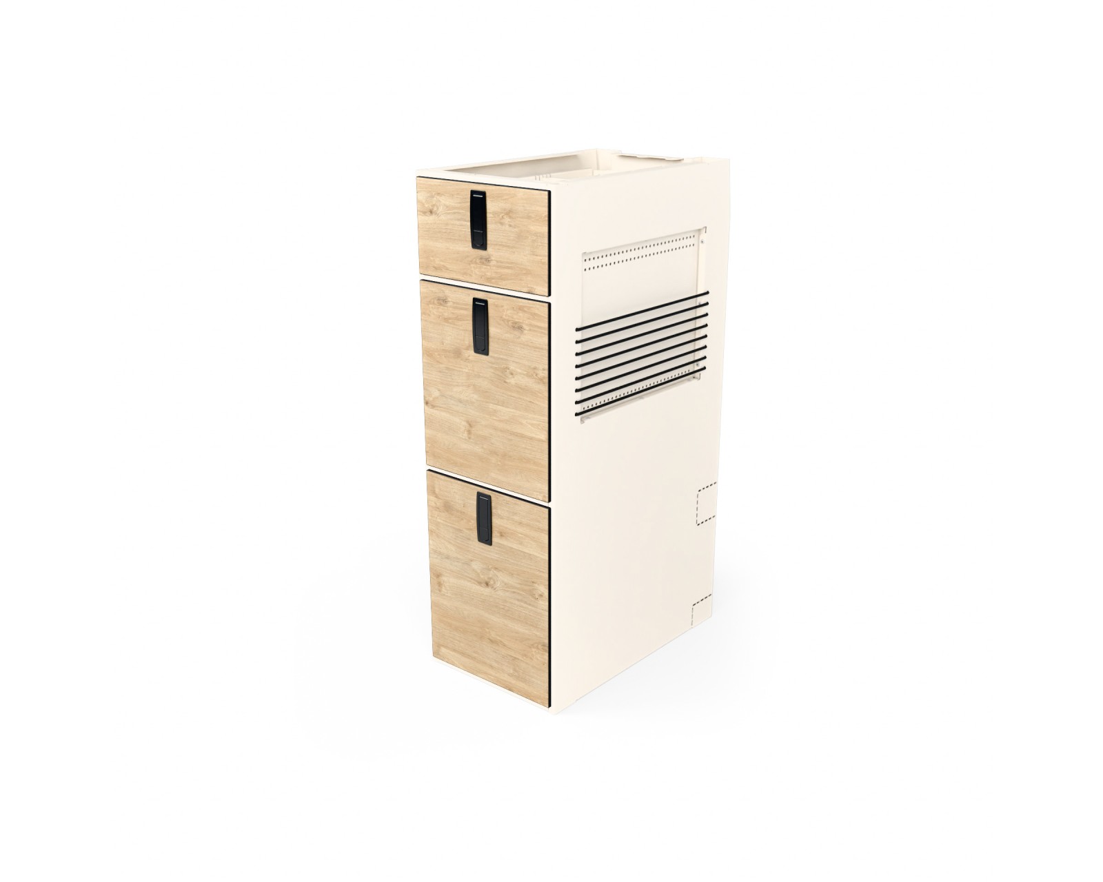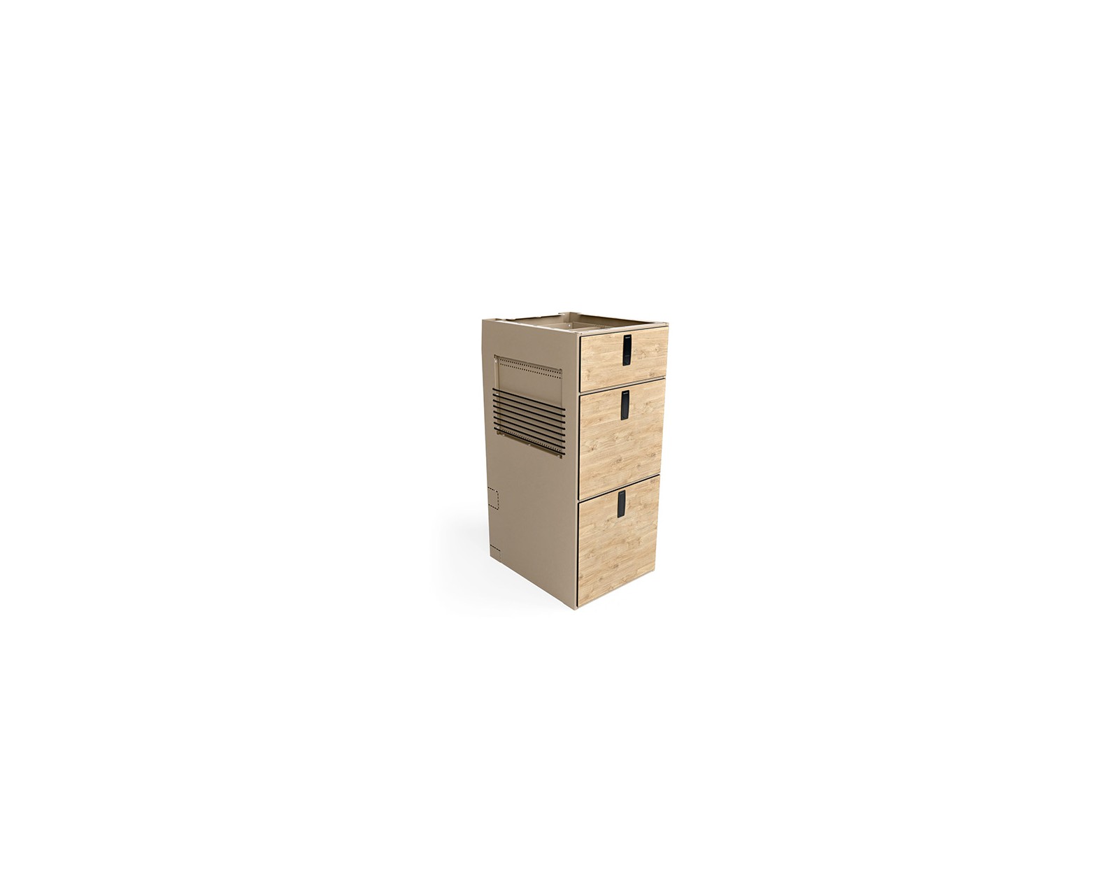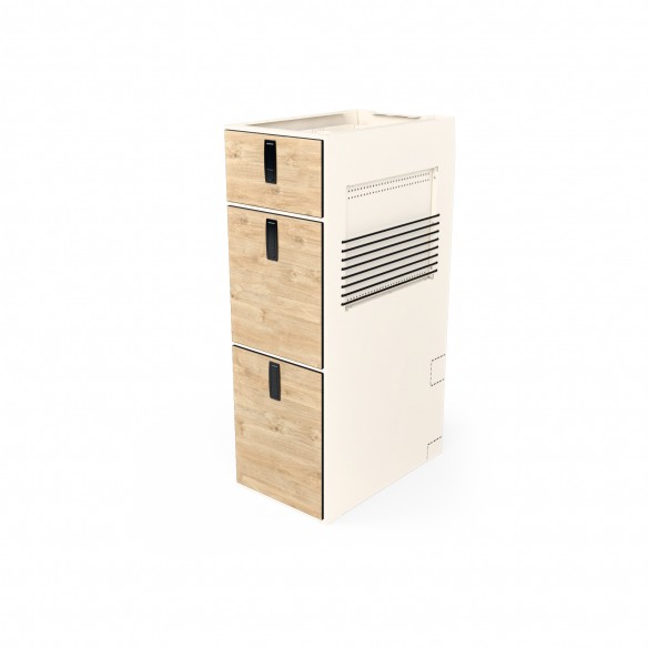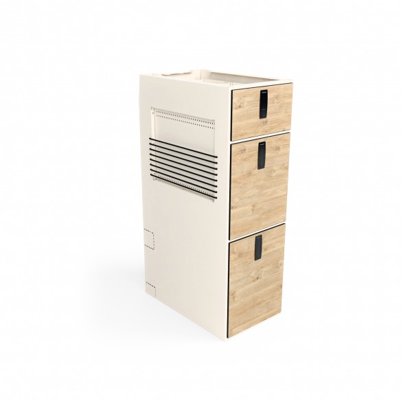 Model 63 to nowy rozdział w rodzinie Moon Kitchen Solid - kompaktowy, aluminiowy słupek zaprojektowany z myślą o tych, którzy potrzebują mniejszej, wolnostojącej szafki z szufladami. Możesz go postawić samodzielnie, połączyć z innymi modułami Moon Kitchen Solid lub dołożyć tam, gdzie dotychczas brakowało Ci miejsca do przechowywania.