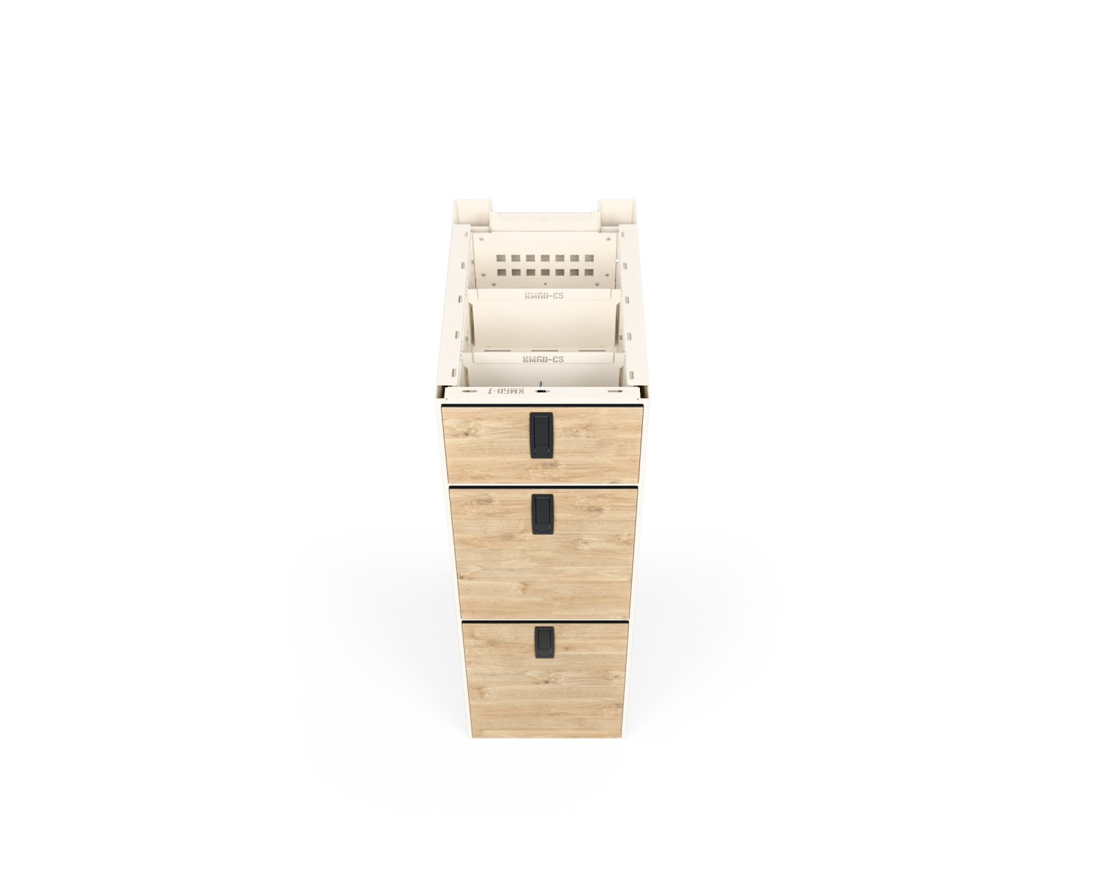 Model 62 wyposażony jest w trzy szuflady - dwie większe i jedną mniejszą. Wszystkie wykonane z aluminium, z przekładkami ułatwiającymi organizację. Idealne do przechowywania sztućców, przypraw i drobnego sprzętu kuchennego. Jeśli potrzebujesz przestrzeni na zlew lub kuchenkę indukcyjną, zajrzyj do modeli 60 i 61.