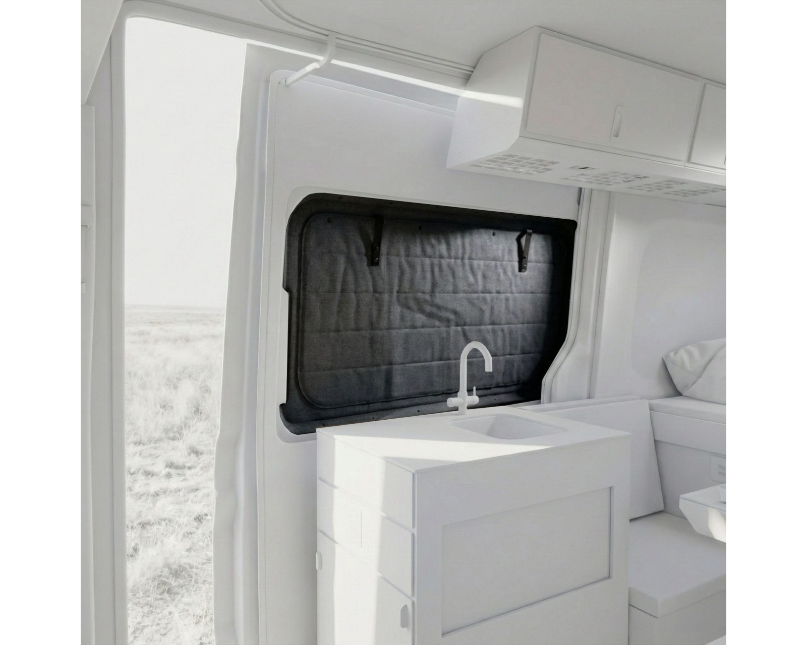 Winthermo to odpowiedź na trzy największe bolączki życia w vanie: skraplającą się wodę na szybach, brak prywatności i owady wpuszczane przez otwarte okna. Jeden produkt, trzy funkcje, które wcześniej wymagały osobnych rozwiązań.