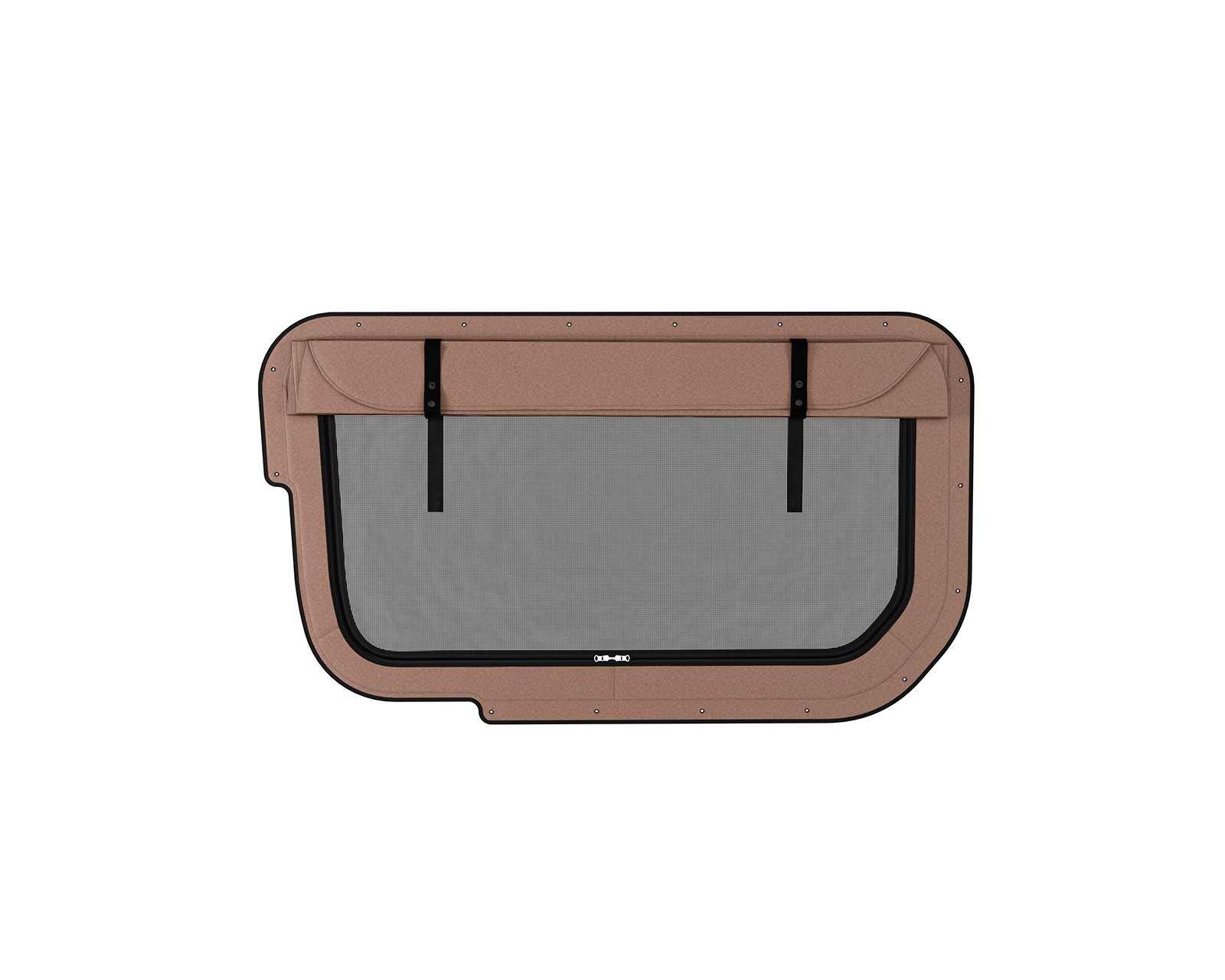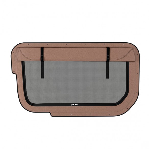 Pełen dostęp do okna - Roletę termiczną odpiąłeś na napach i schowałeś. Moskitierę zwinąłeś do góry. Masz czysty widok, pełne światło, bezpośredni dostęp do okna. Idealnie na jazdę, kiedy nie potrzebujesz żadnej ochrony.