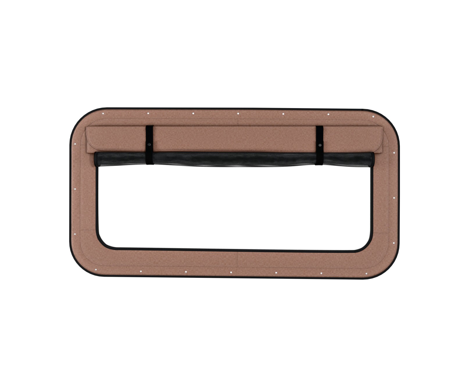 Pełen dostęp do okna - Roletę termiczną odpiąłeś na napach i schowałeś. Moskitierę zwinąłeś do góry. Masz czysty widok, pełne światło, bezpośredni dostęp do okna. Idealnie na jazdę, kiedy nie potrzebujesz żadnej ochrony.